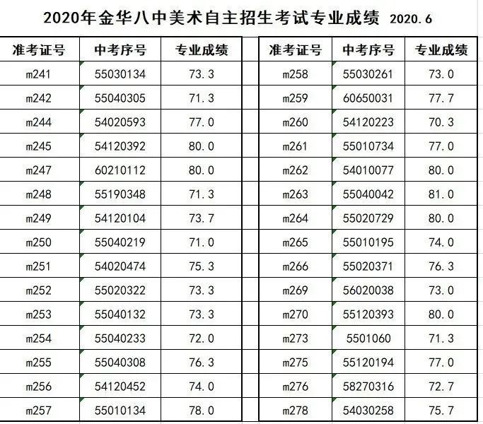 以下为金华八中2020年美术特长生招生考试成绩 ,请各位考生根据准考证号查询成绩。