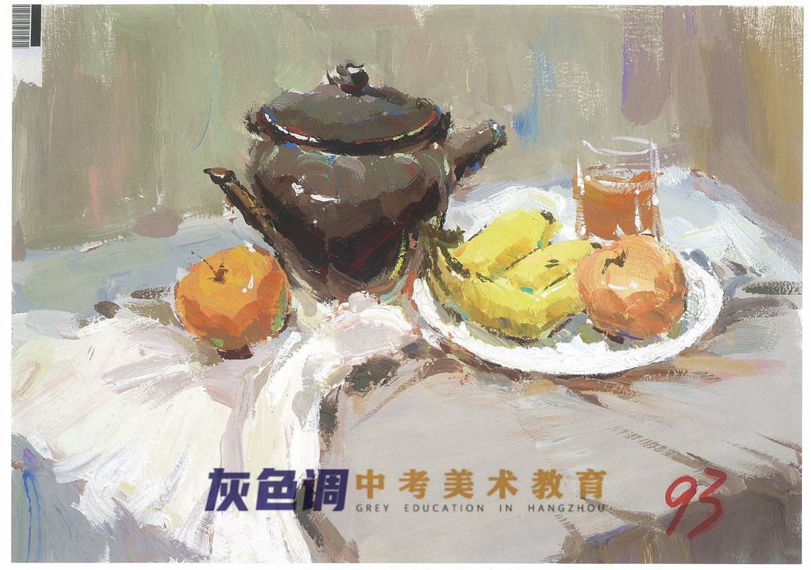考试重视考生对基本色彩规律的认识,考察学生在写生中体现出来的色彩感受修养和组织能力,要求具备较好色彩塑造表现力,在具体考试内容上,一般采取两块衬布作为背景,内容包括酒瓶、酒罐、砂锅、盘子、杯子、面包、水果等基本静物。摆放数量适中,构图平稳,空间层次分明,色彩关系明确协调。考试内容相对比较规范,四开纸大小,较少出现新奇少见物品。色彩关系、冷暖色调都有明确考虑。