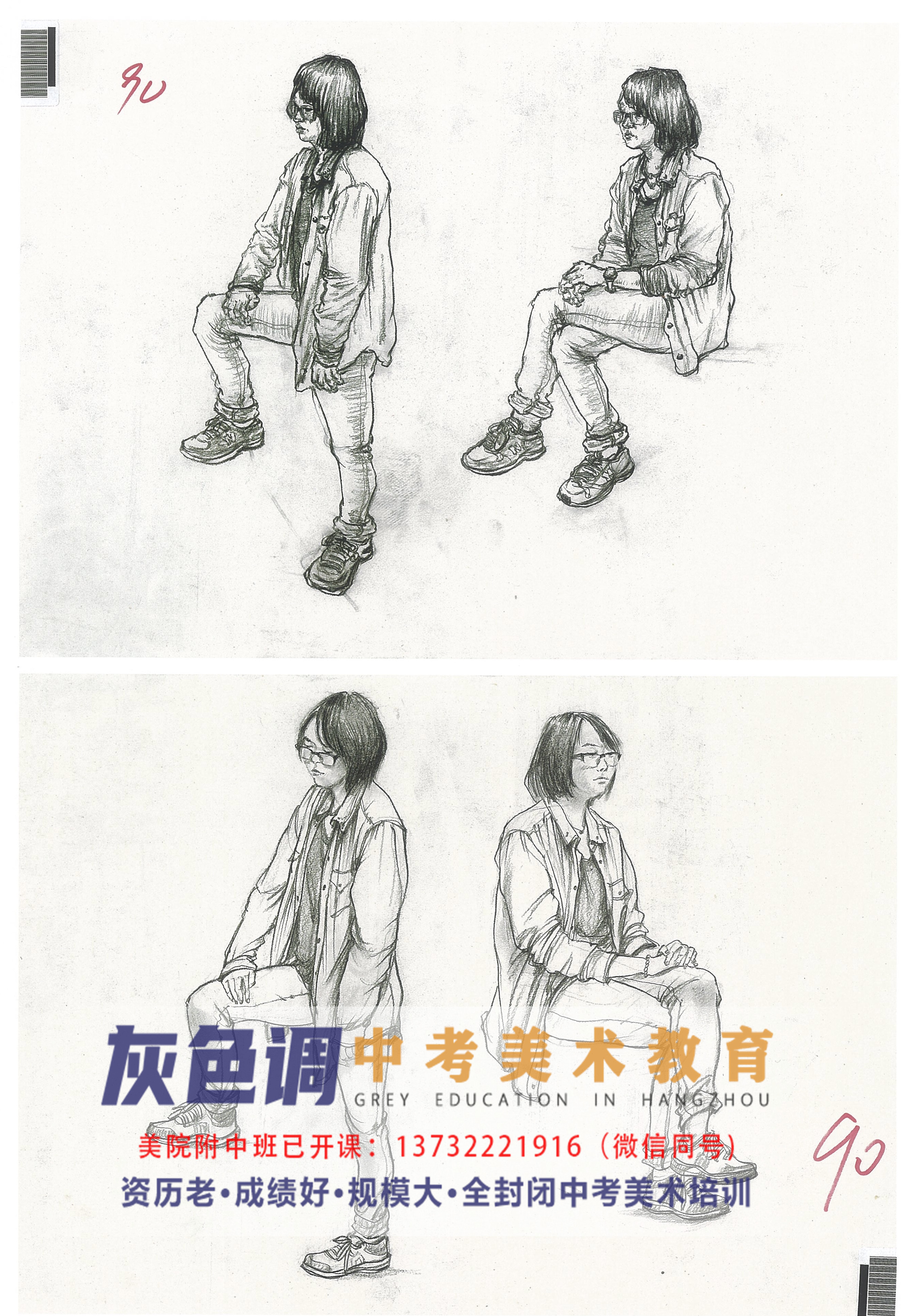 考试内容来看,附中速写考试内容为人物写生,四开纸大小,时间为60分钟,形式包括快写与慢写。附中速写考试一定包括慢写内容,一般规定在三十分钟内完成一个静态模特的写生,站姿坐姿都有可能。通过这样的写生,考察学生速写基本的造型能力,观察方法,表现能力及个人的艺术感受、这也是考核重点。
