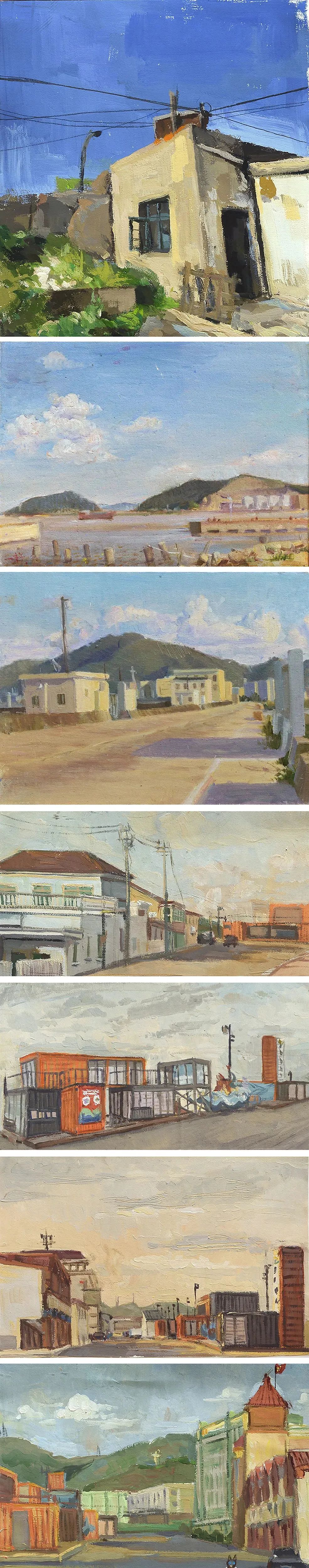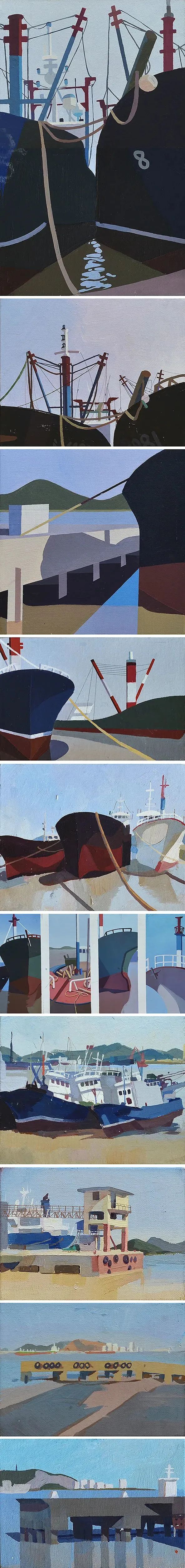 有的作品运用平涂的、克制的造型语言冷静地表现渔船码头;有的提取海景中的光色、结构、肌理等元素,追求色彩中的力度等等。特别是过程中,成立一支油画小分队来组织年级部分学生,通过踩点写生不同的村庄、海景,尝试油画写生技法及不同的感受。