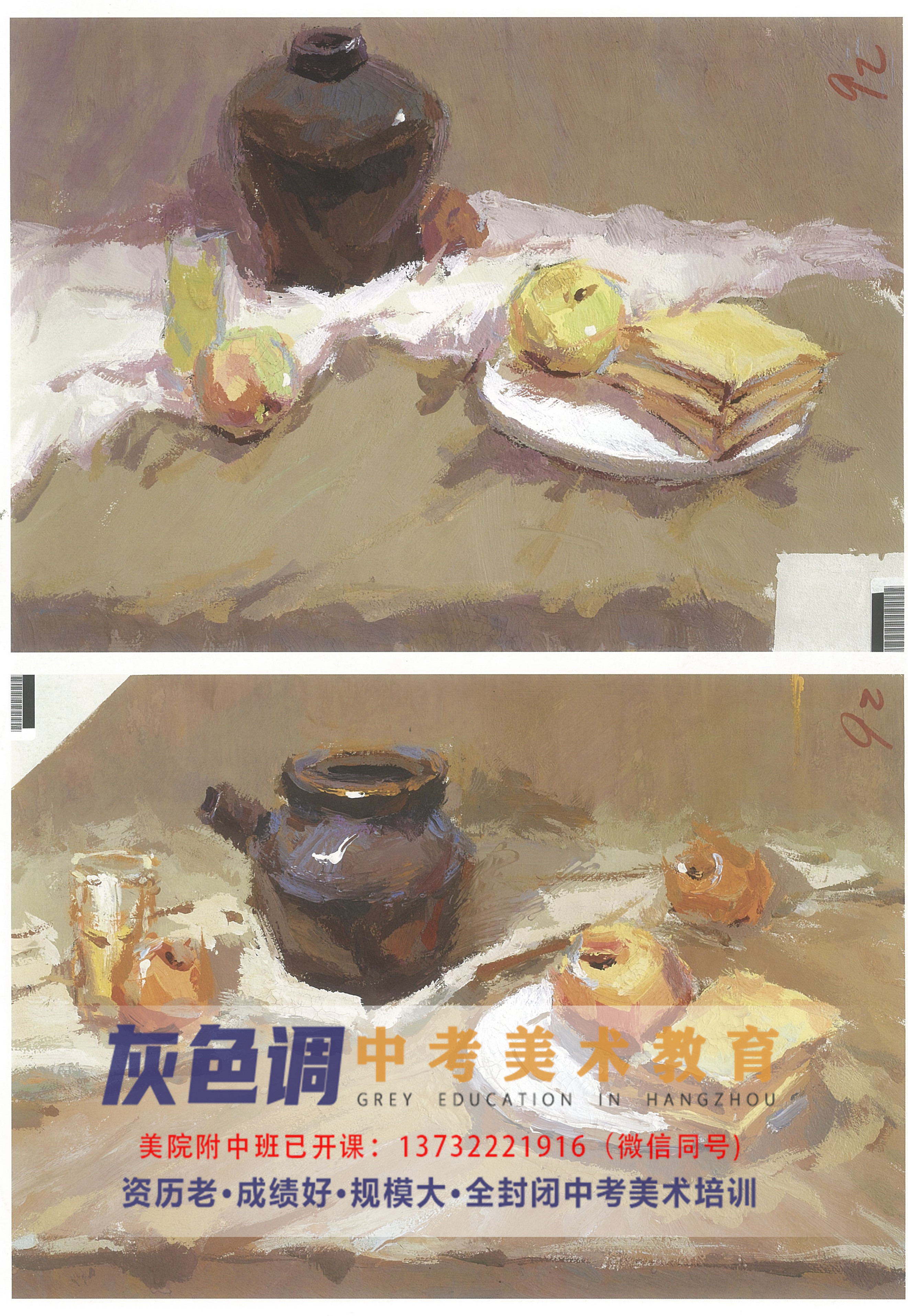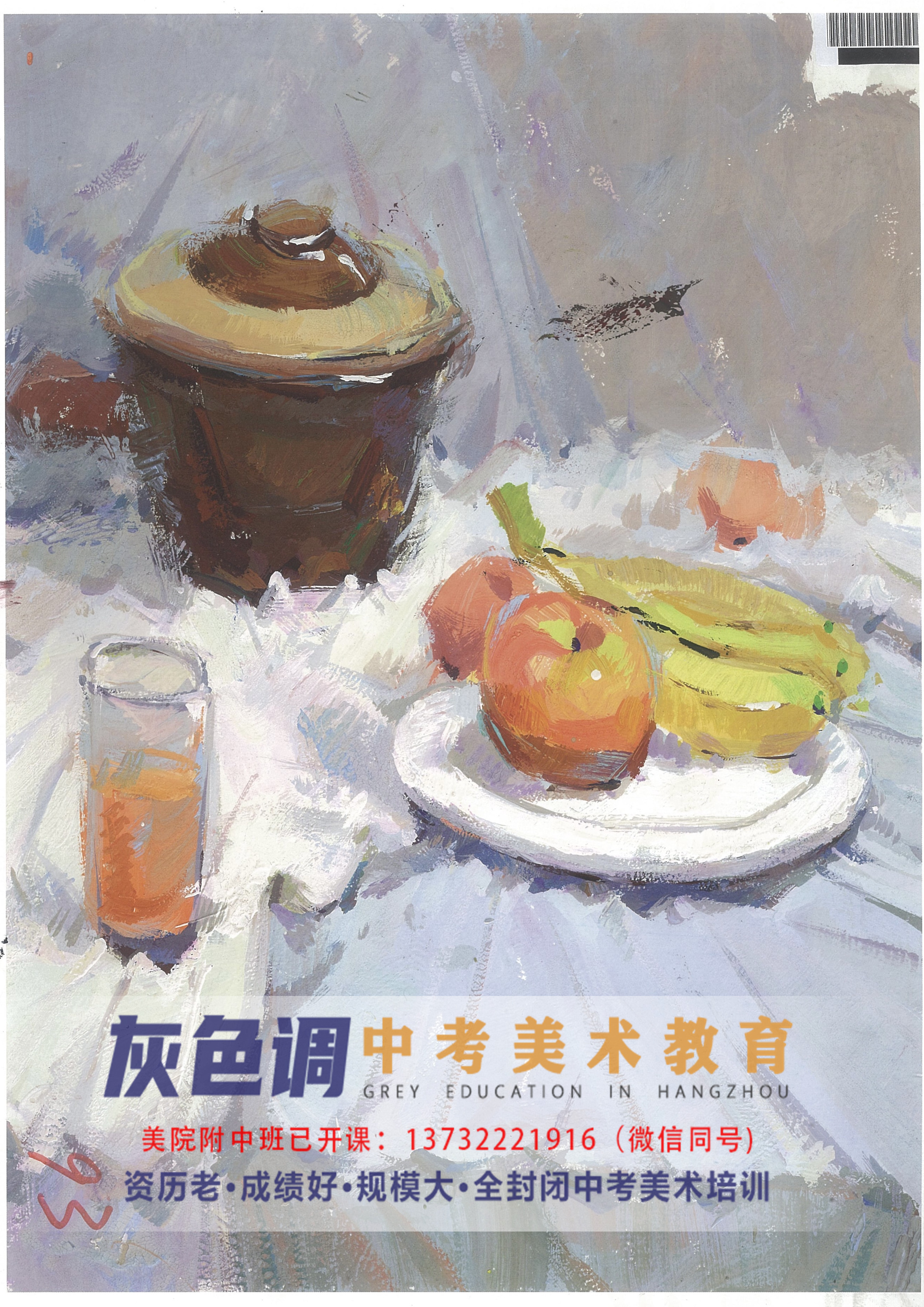 1、一个棕色陶罐,一个玻璃酒瓶、一个白盘子上水果若干,一把水果刀 。