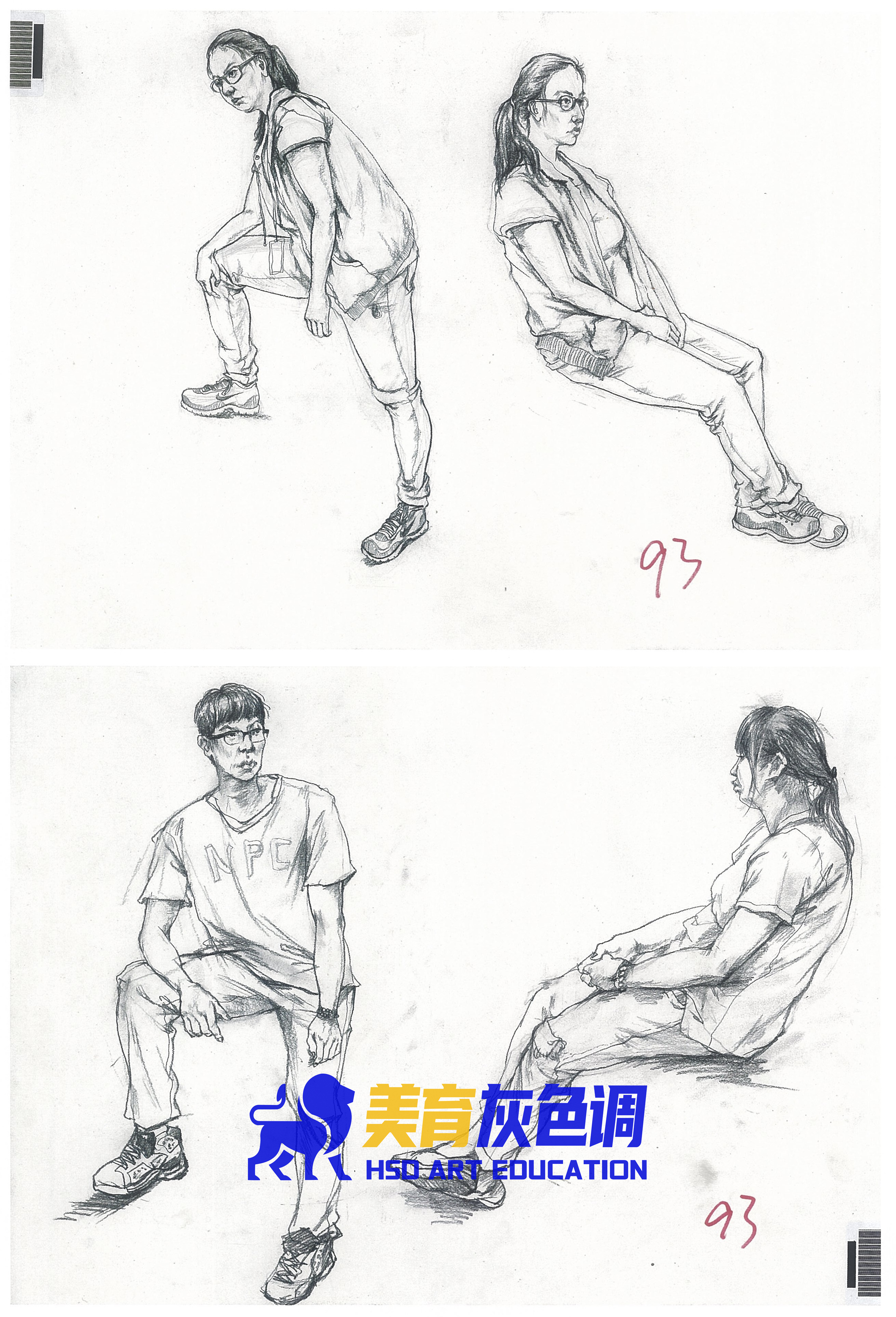 从考试内容来看,附中速写考试内容为人物写生,四开纸大小,时间为60分钟,形式包括快写与慢写。慢写内容一般规定在三十分钟内完成一个静态模特的写生,站姿坐姿都有可能。动态速写考试时间一般十五分钟左右,模特动态一般静止,经常会摆出相对动态明确的姿势,如拉锯、喝水、拖地、系鞋带等动作。