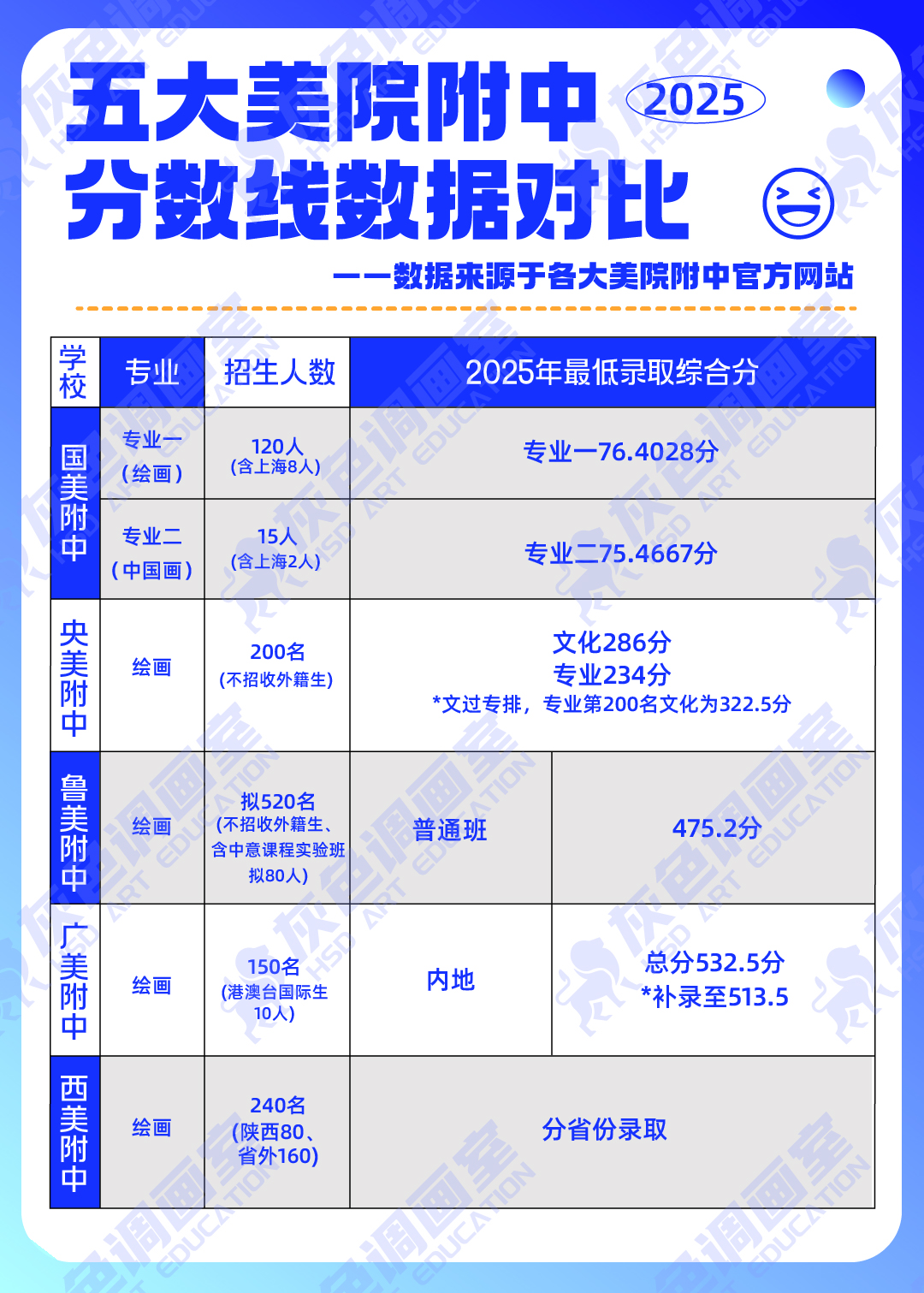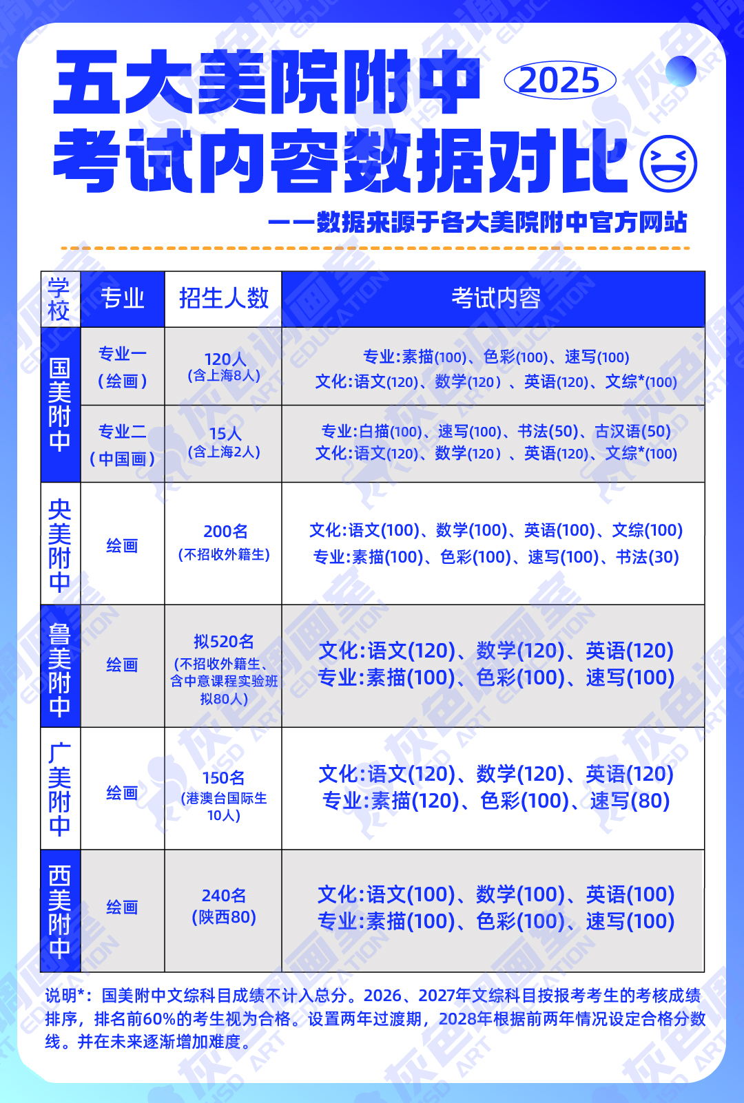 鲁美附中:专业课考试分数与文化课考试分数相加,按综合分择优录取;