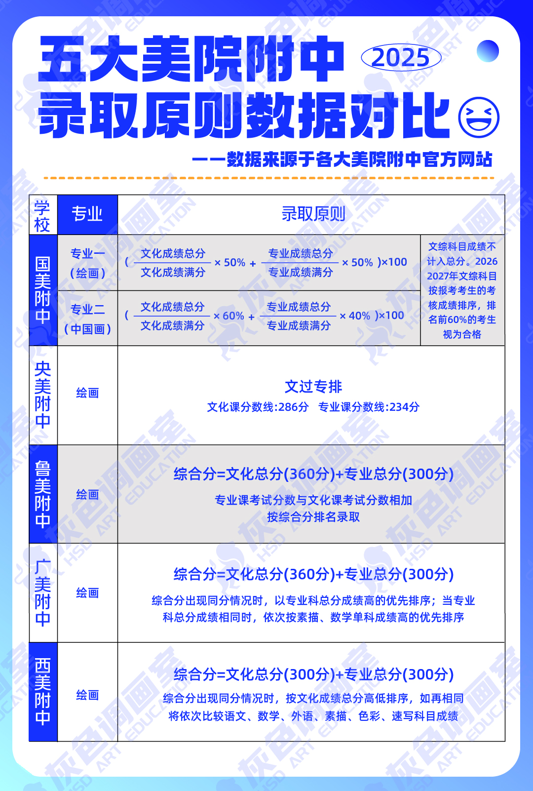 广美附中:专业课考试分数与文化课考试分数相加,按综合分择优录取;