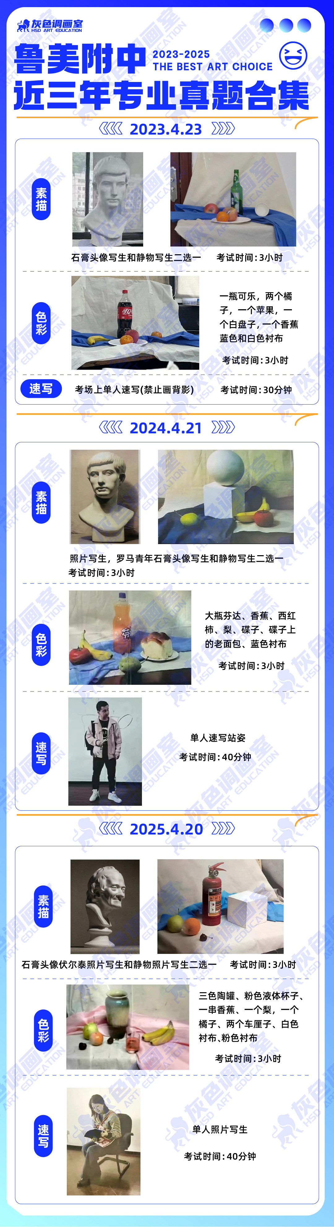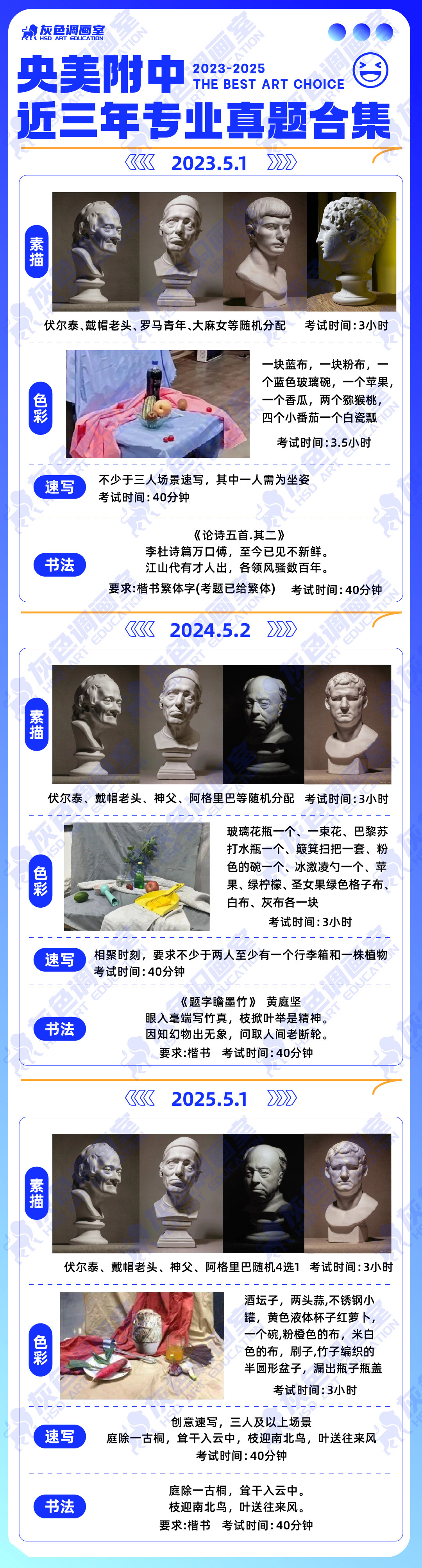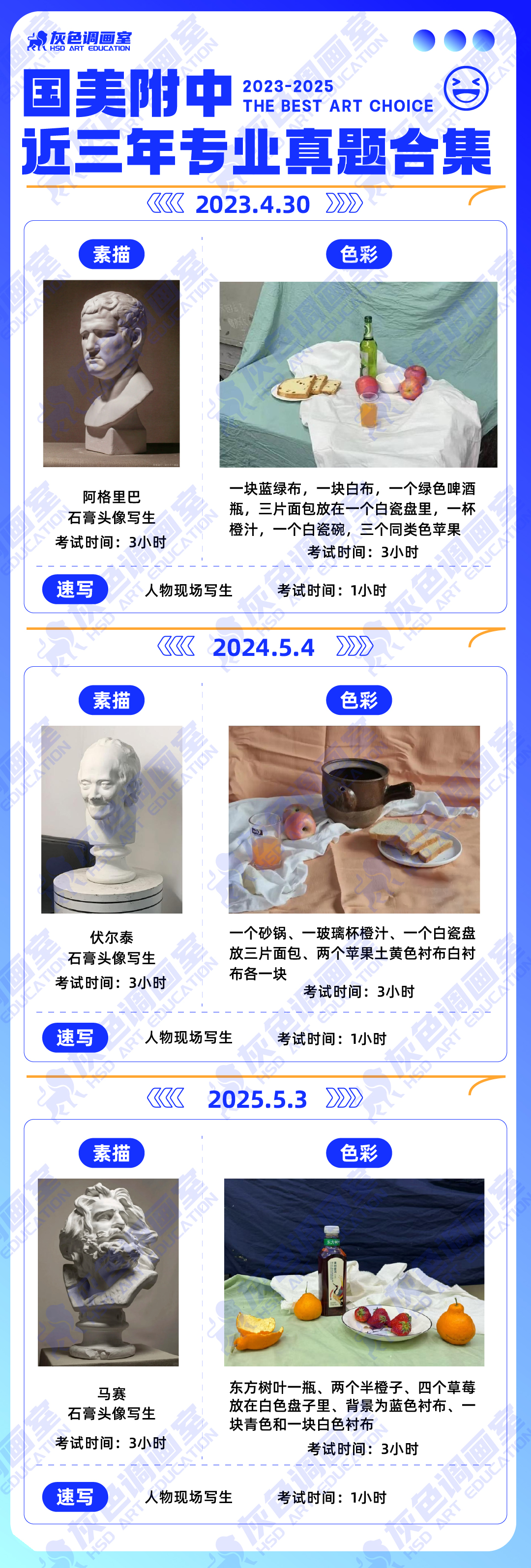 素描:伏尔泰、戴帽老头、罗马青年、大麻女等随机分配,考试时间:3小时;